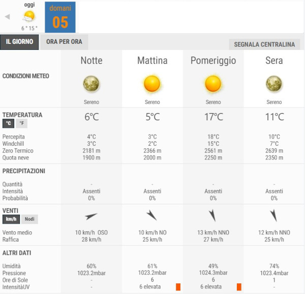 La temperatura massima registrata pare che sarà di 17°C, la minima di 5°C.