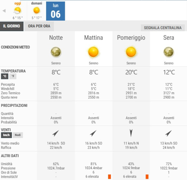 Lunedì 6 Aprile avremo bel tempo con sole splendente per l’intera giornata, non sono previste piogge.