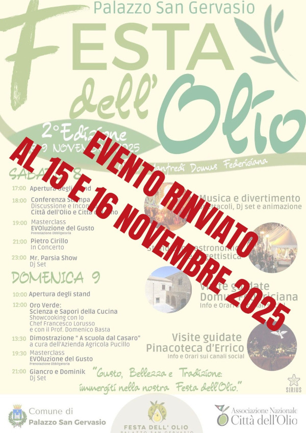 Palazzo San Gervasio rinviata la seconda edizione della Festa dell’Olio. Le nuove date