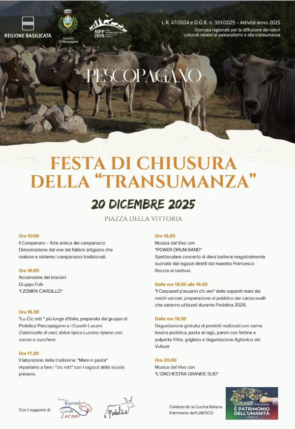 Domani appuntamento a Pescopagano per chiudere un anno eccezionale di eventi, un percorso fatto di identità, comunità e futuro con la Festa di chiusura della Transumanza.