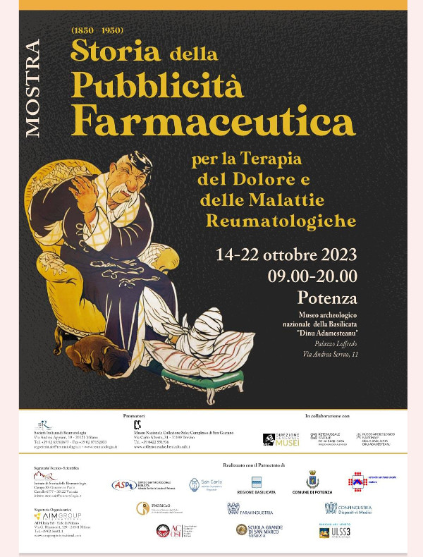 A seguito di un bando indetto dalla SIR – Società Italiana di Reumatologia e rivolto ai suoi soci, sono state individuate due realtà prestigiose che ospiteranno la mostra “Storia della pubblicità farmaceutica per la terapia del dolore e delle malattie reumatologiche”: Forlì e Potenza.