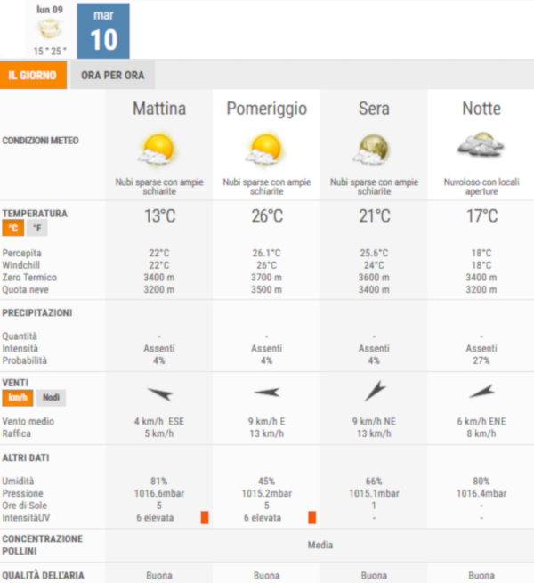La temperatura massima registrata pare sarà di 26°C e la minima di 13°C.