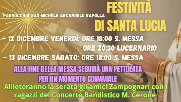 La Parrocchia San Michele Arcangelo di Rapolla si prepara a festeggiare Santa Lucia, Vergine e Martire.