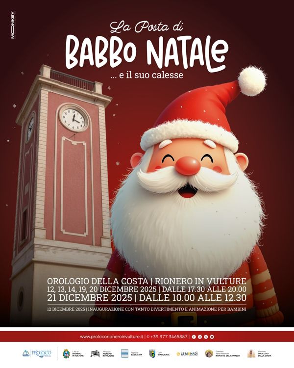 - Dalle 18:00 – Il Borgo Incantato (Rione Costa) con la Posta di Babbo Natale per spedire i vostri desideri e i suggestivi Mercatini di Natale.