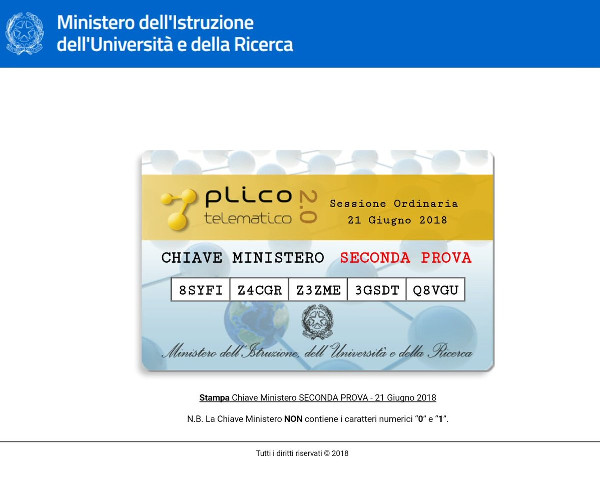 Di seguito, il codice per l’apertura del plico telematico della seconda prova.