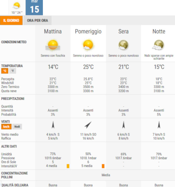 La temperatura massima registrata sembra sarà di 24°C e la minima di 10°C.