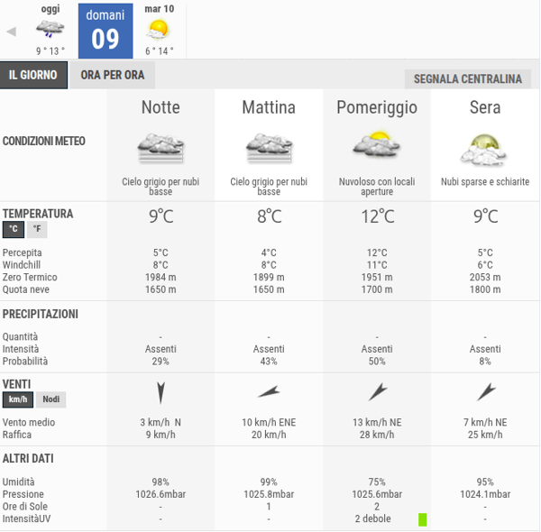 La temperatura massima registrata pare che sarà di 12°C, la minima di 8°C.