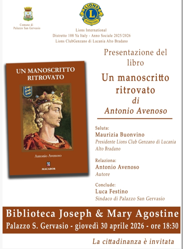 La presentazione, su iniziativa del Lions Club Genzano di Lucania Alto Bradano, in Palazzo San Gervasio si concentra sul valore storico e culturale dell’opera, spesso organizzata in contesti legati alla valorizzazione del territorio, come la Fondazione Sassi a Matera.