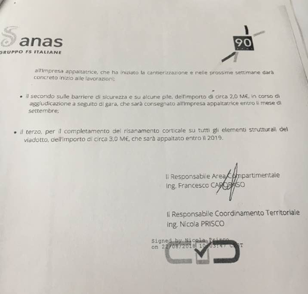 Con la premessa (sottoscritta dai tecnici dell’Ente nazionale per le strade) che le strutture del ponte non versano in uno stato di criticità ai fini della circolazione stradale, più di 6 milioni di euro verranno stanziati per finanziare il recupero di: